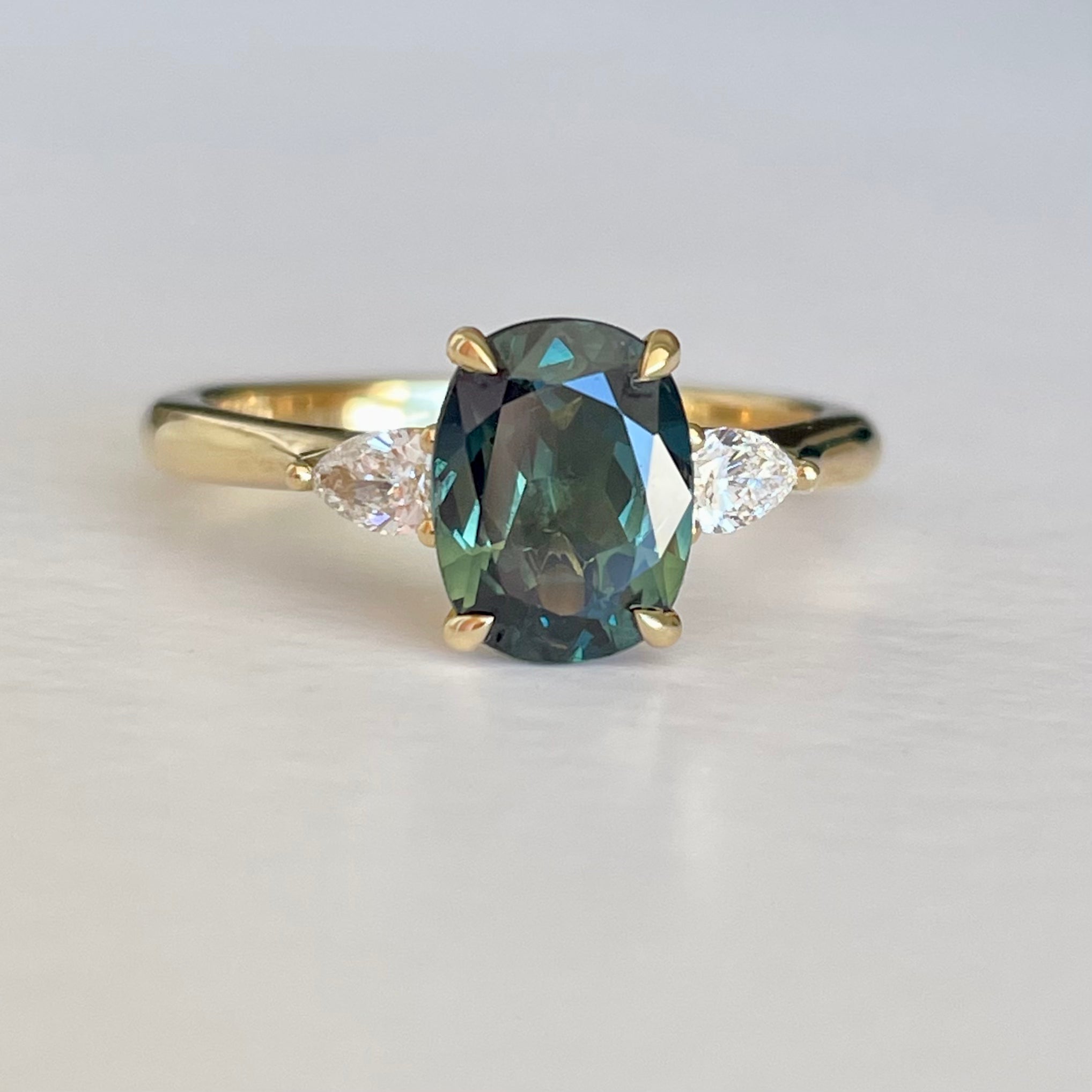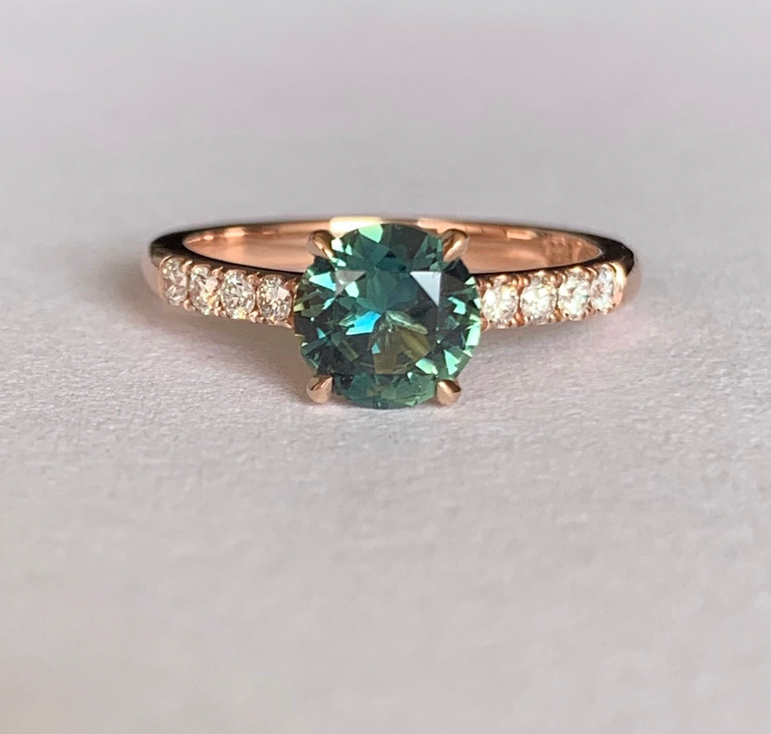 Australian Blue Green Sapphire & Diamond Oceana Ring