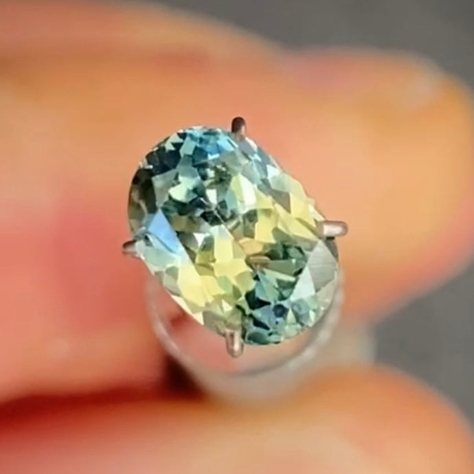 Oval 1.12ct blue/yellow parti Australian Sapphire Weight: 1.12 carat Measurements: 7.12mm x 5.10mm Treatment: Nil All photos and videos taken in natural light outside in the...
