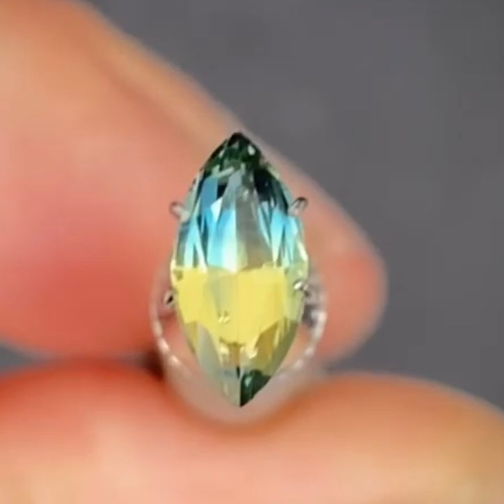Marquise 1.09ct blue/ yellow parti Australian Sapphire Weight: 1.09 carat Measurements: 9.52mm x 4.70mm Treatment: Nil All photos and videos taken in natural light outside...